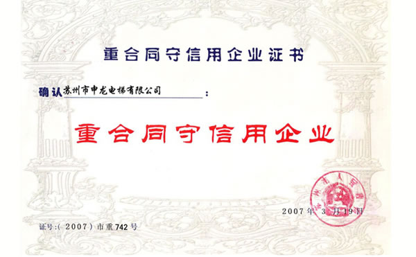 蘇州市重合同守信用企業(yè)證書